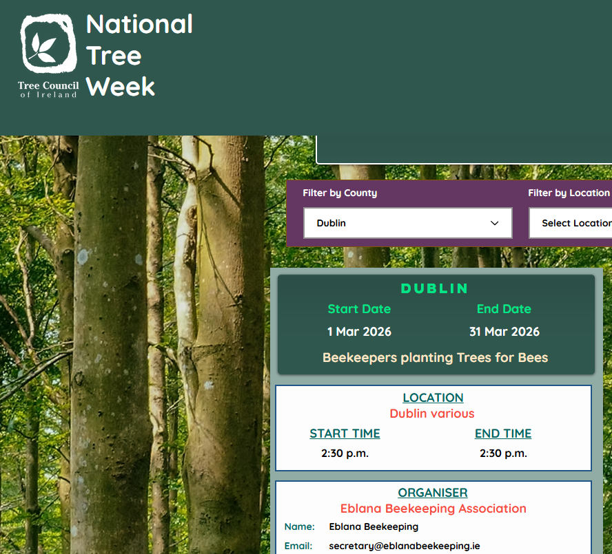 Eblana Beekeepers are participating in National Tree Week and will be planting over a hundred saplings (native Irish trees) at various locations across Dublin/Meath/Kildare